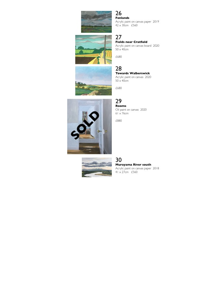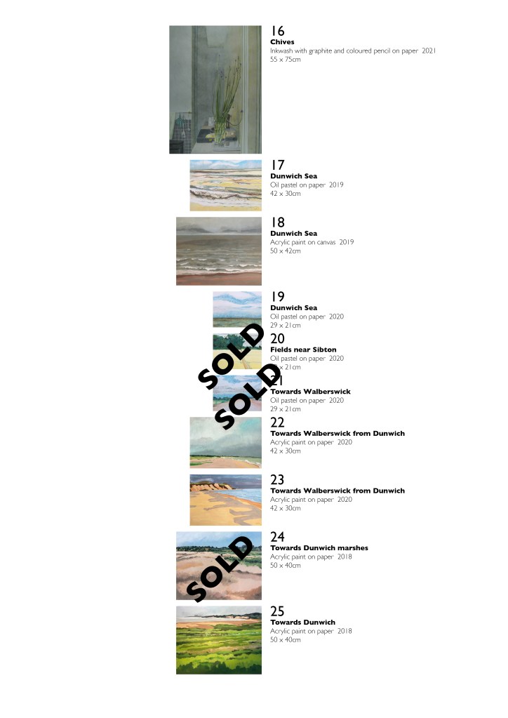 Please find below the catalogue summary and sales prices for the artwork from the concluded exhibition ‘Lockdowns & Landscapes’ at Hornsey Library from 29 Nov to 11 Dec. All the pictures are professionally framed except for nos. 15 & 29 which are sold unframed.