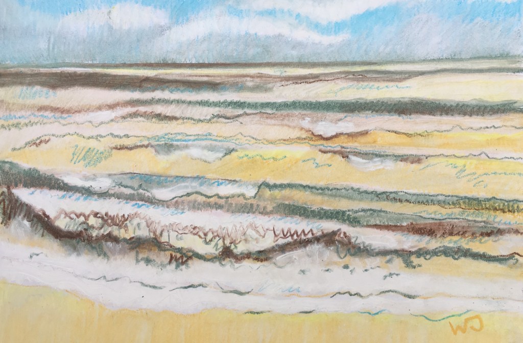 Following a year of many visits to a temporary Degas exhibition at the National Gallery, London, finally a drawing which seems to be getting somewhere. The waves are beautiful even on a grey winter’s day on the edge of the North Sea.