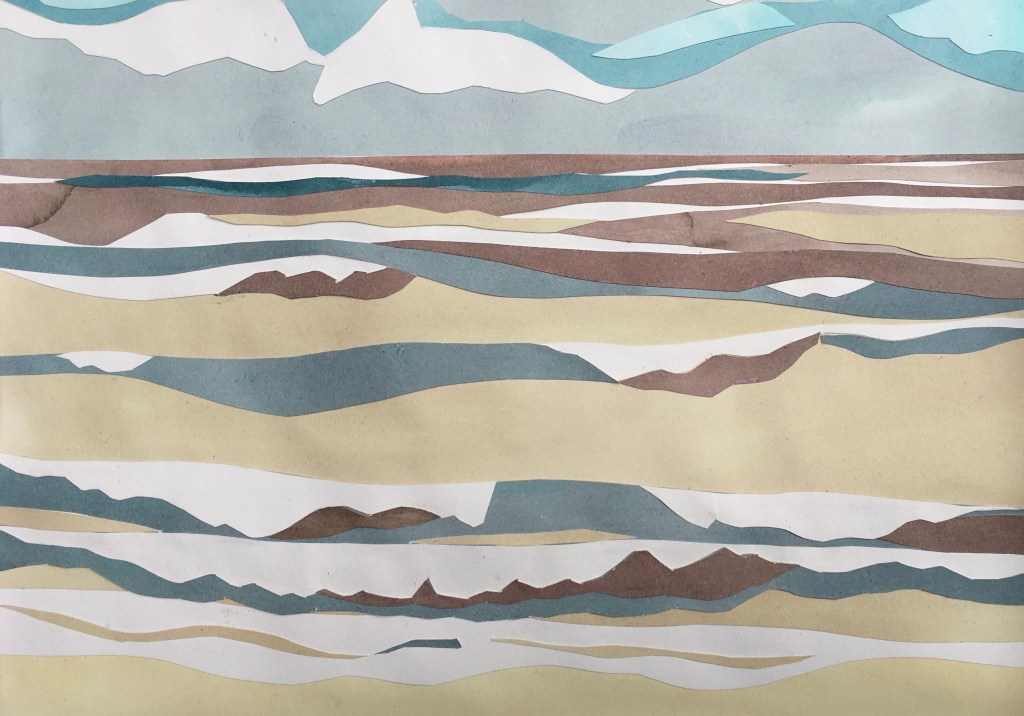 Above is the culmination of a collage series I started a few days ago. The others, with varying degrees of success, are below. They are fun to make. The manual work of cutting and glueing the coloured inked papers a pleasant methodical process. Mysteriously, they suddenly make surprises of images I’d not foreseen.