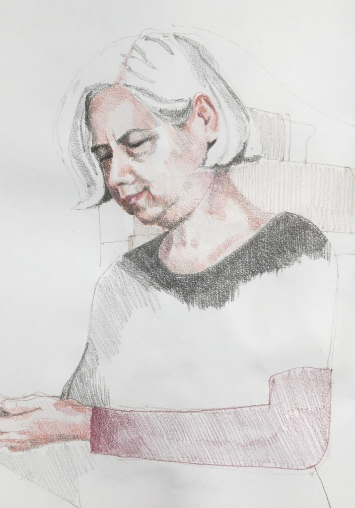 However, placing a figure in them – Yasmin – is difficult. The spatial logic tells you that in the same way you can see the top of the plant pot and it’s elevation simultaneously you should be able to see the top of Yasmin’s head and her face too. I tried but couldn’t get this to work. It just looked silly.
