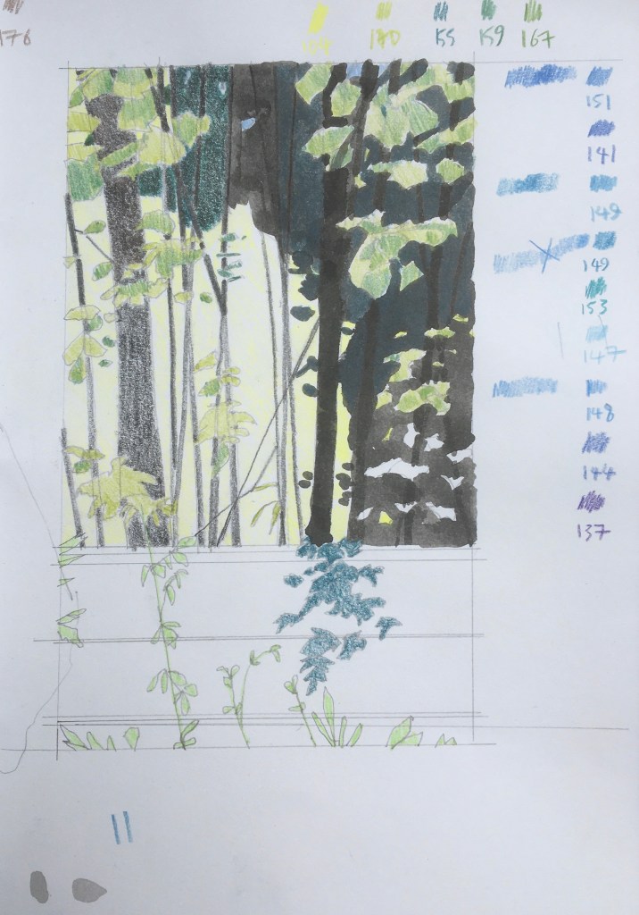 I was trying to experiment with not using perspective conventions and instead using the flattening axonometric techniques of architectural drawing, similar to Japanese and Chinese art of the 18th and 19th century.