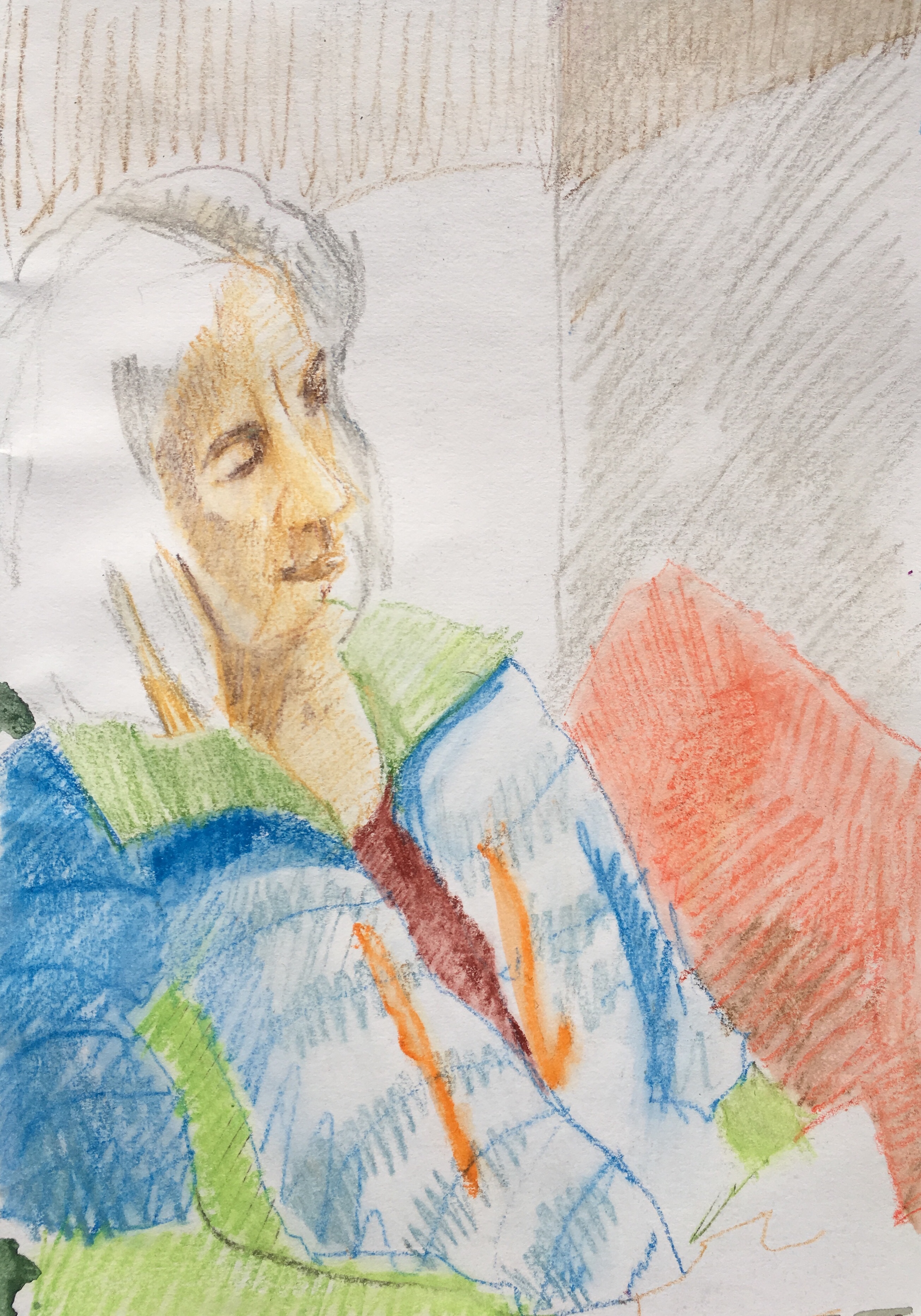 The other difficulty is straight lines. I’m learning that a smudge to indicate a door’s panelling or the shape a book on a shelf perhaps can work. This kind of inaccuracy is difficult having spent years as an architect always drawing straight lines.